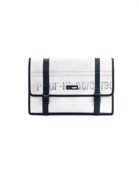 Hoe stoer is dat. Tassen en accessoires van brandweerslangen. Ontelbare keren zijn de brandweerslangen door hitte, roet en modder gesleept. Liters water zijn er doorheen gepompt om vuur te doven en levens te redden. Voordat de slangen bewerkt worden tot tas of telefoonhoesje, zijn ze eerst goed schoongemaakt. Feuerwear tassen zijn onverwoestbaar en ieder exemplaar is uniek. Deze Messenger Bag heeft een verwijderbare schouderriem (ook van brandslang gemakt) en een extra riem voor om je middel. Zo blijft je tas ook op de fiets goed zitten. Handigheidje: de riem is ook voor linkshandigen makkelijk te verstellen. De tas heeft handige opbergvakken voor je telefoon, sleutels en ander klein spul. Er past een laptop (tot 15 cm) of tablet in. 29,5x43,5x14,5cm
